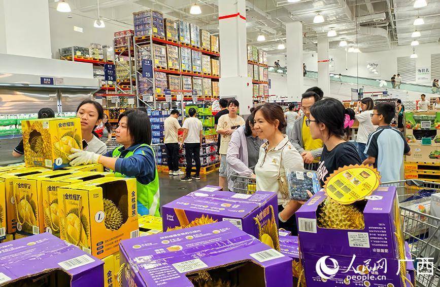 市民在南宁山姆超市选购进口金枕榴莲。人民网 付华周摄